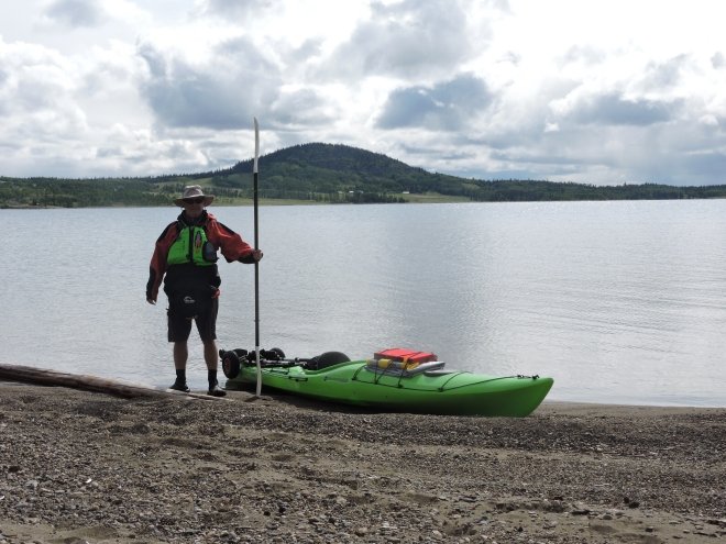 The decision was made that we would do the 325 km loop in a clockwise direction. So, from Little Andrews Bay, we would paddle east on Ootsa Lake, which is very large, down to Jim Smith Point. The main reason for this is that the prevailing winds are westerly. So on the biggest lake we would have the wind on our backs. This proved to be the right choice.